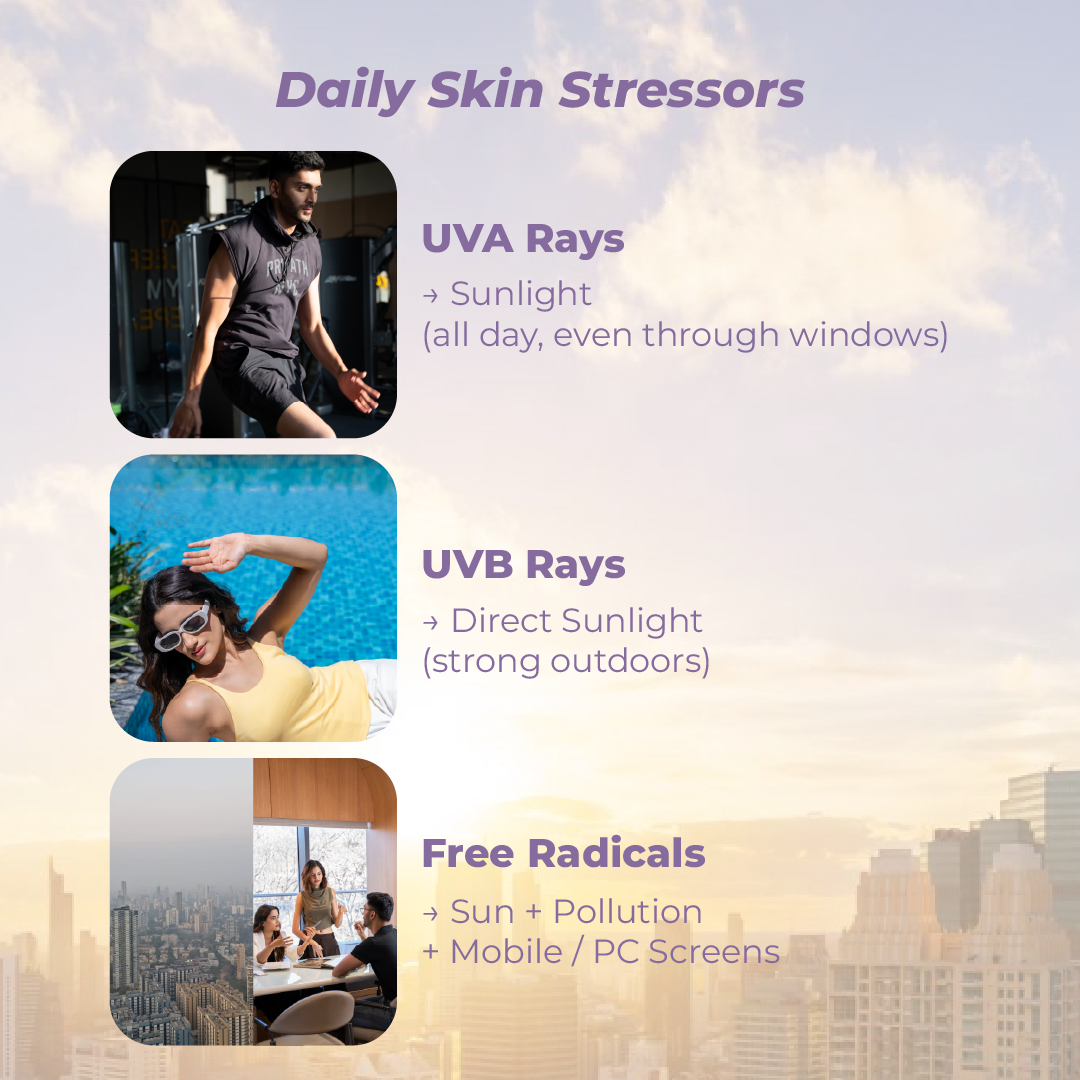 Built for movement and long days, Lumishield Sunscreen uses Encapsulation Technology to deliver even, longer-lasting UV protection while maintaining skin comfort. With broad-spectrum SPF 50 PA++++ filters, it protects against sun exposure, pollution, and urban stress without feeling heavy or greasy. The watery, cream-like texture blends seamlessly into skin. No white cast, no irritation, no residue- making it ideal for constant indoor-outdoor transitions.